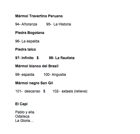 Son 94 esculturas en cerámica-terracota ,piedra, mármol y bronce que están exhibidas