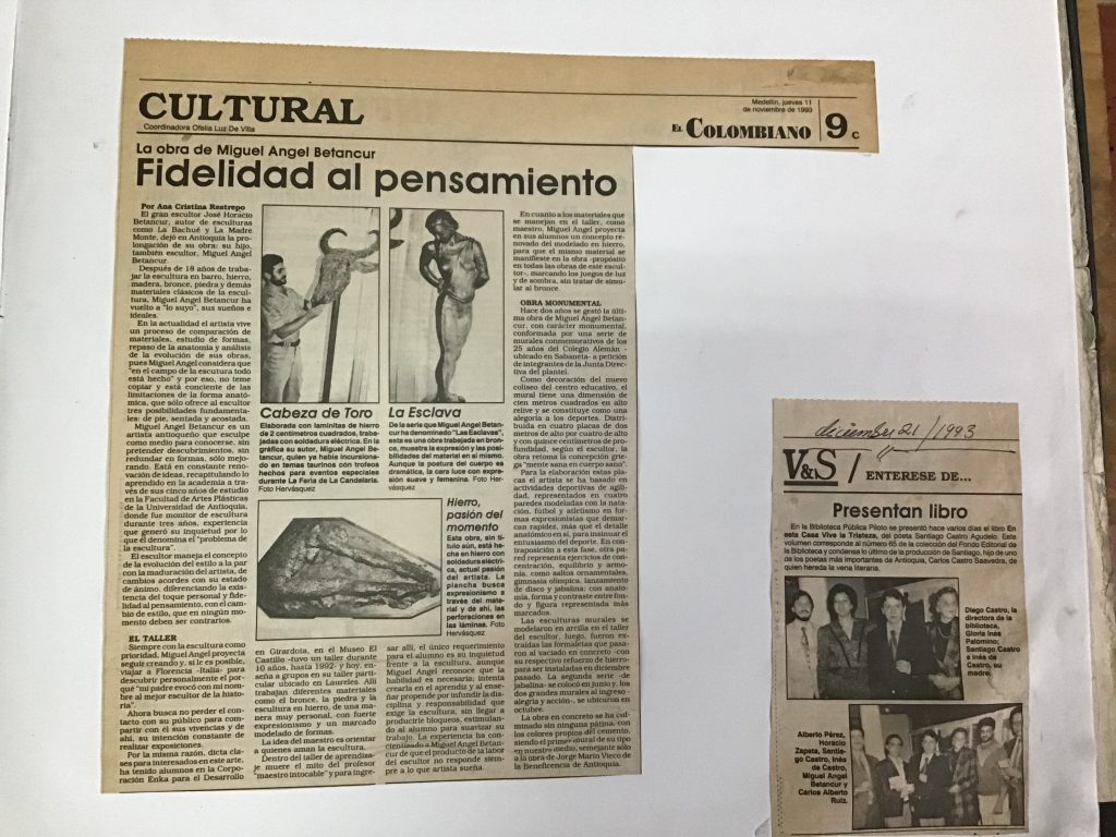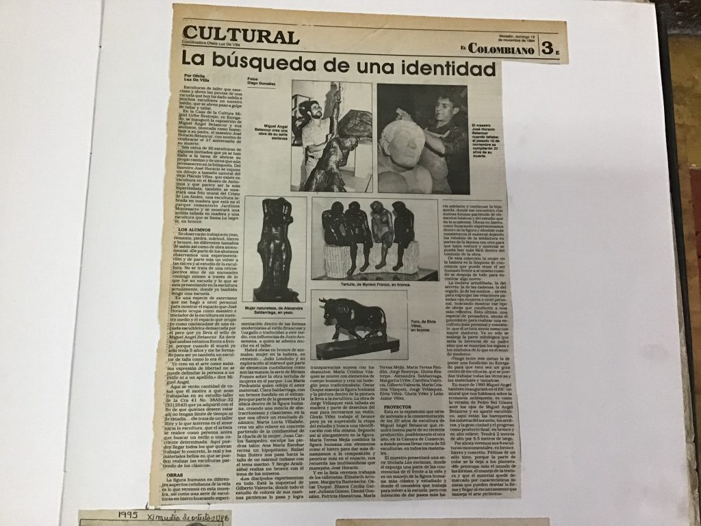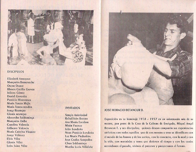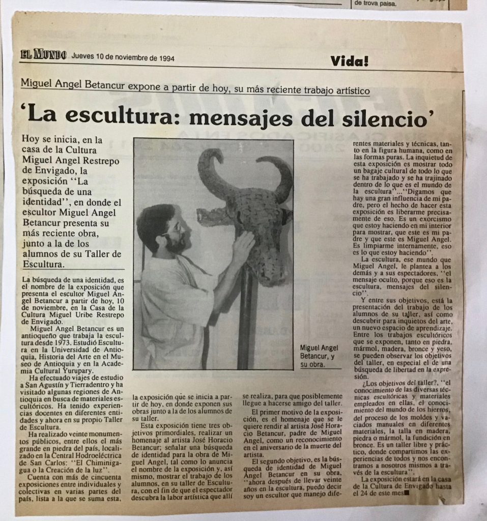 Entre los años 1993 y 1994 participé en varias exposiciones colectivas destacándose la de 1994 en la Casa de la Cultura de Envigado, exposición en Homenaje al Escultor José Horacio Betancur B. titulada “En busqueda de una identidad” fue una exposición donde participaron todos los estudiantes de mi taller y algunos de mis exalumnos como: Sergio Aristizabal, Rafael Iván Botero, Miriam Franco, Julio Londoño, Patricia Londoño, Luz María Piedrahíta, Clarita Saldarriaga, Marha Lucia Villafañe, Gloria Vélez y Elvia Vélez entre otros, hubo obras por supuesto de José Horacio y mías.