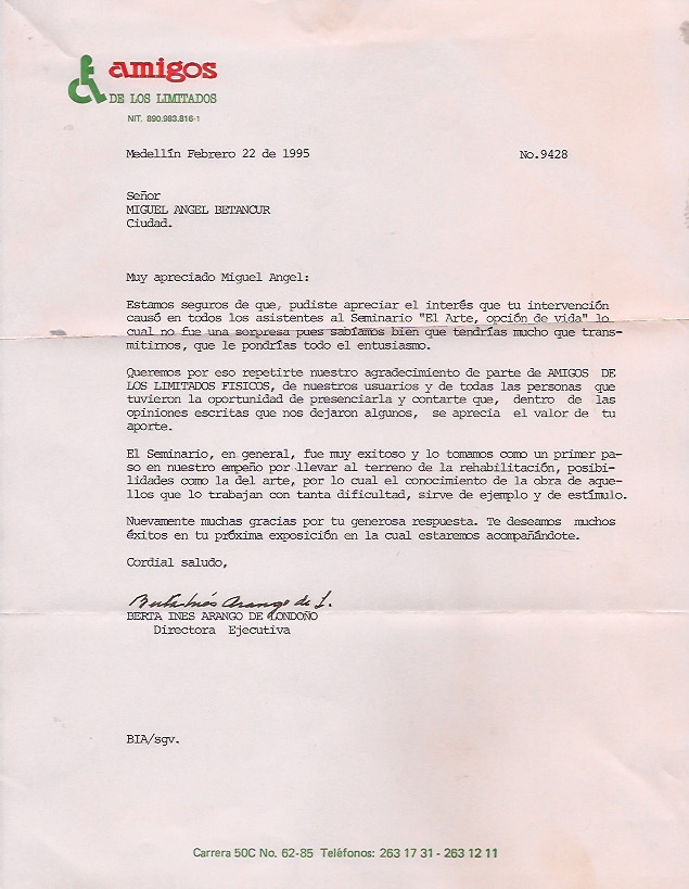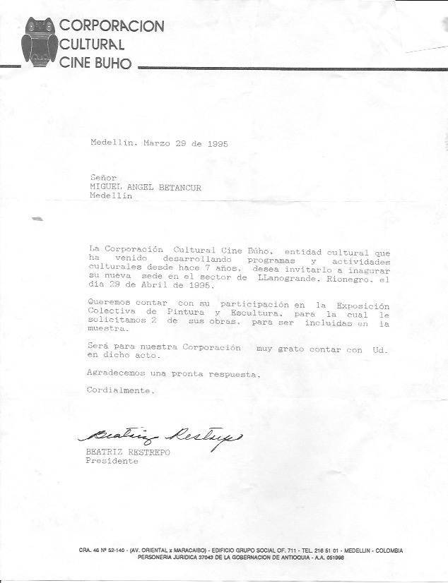 Participé también en 1996 de varias exposiciones colectivas entre ellas La Muestra de Artistas de la U.P.B. – Artistas Envigadeños en la Casa de la cultura y 7 Artistas de la Plástica y el Club Rotario de Envigado Sur en sus 10 años.