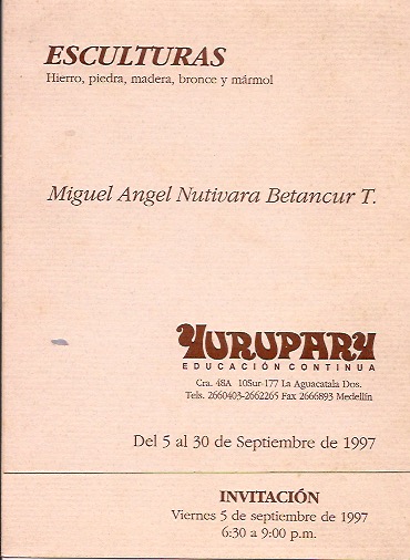 Además “Formas y Materiales” en la Academia Cultural Yurupary 1997 donde se muestran las esculturas en monedas de cobre y las esculturas en piedra.