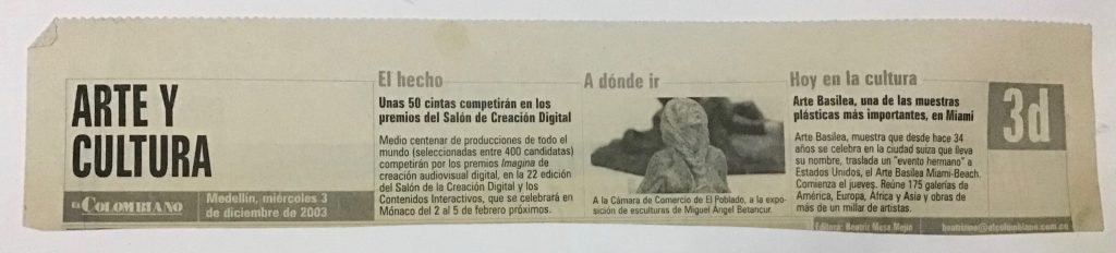 En este año 2003 participé también en 4 exposiciones colectivas de pintura y escultura.
