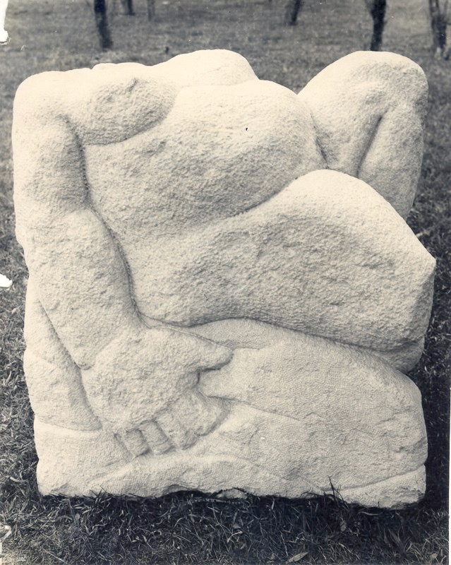La Escultura “UNIDOS EN LA ESPERANZA Y EN EL DOLOR” del año **1977 la ** tallé al aire libre en el mismo sitio del Parque Cementerio Jardines Montesacro del Municipio de Itaguí donde se encuentra actualmente es una piedra bogotana (arenisca) de 2.50 mts de altura por 1.20 mts por 1.00 mts y 9 toneladas de peso, son siete integrantes de una familía reunidos ante la esperanza y el dolor que causa la muerte.
