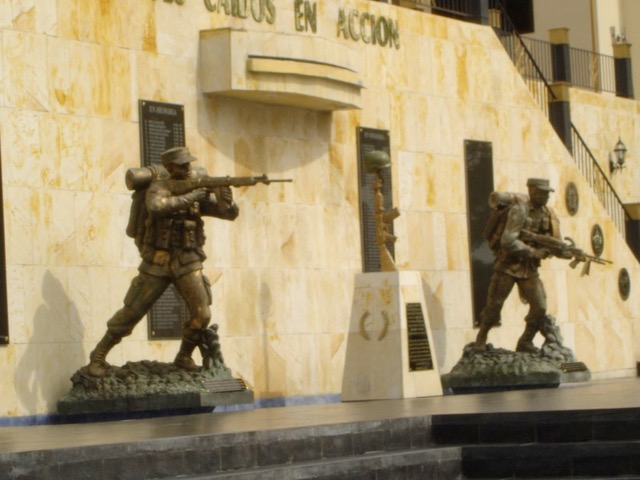 Para el año 2007 realicé el “MONUMENTO A LOS HÉROES CAÍDOS EN ACCIÓN” para La Décima Cuarta Brigada del Municipio de Puerto Berrio-Antioquia. Allí lleve “El soldado con el fusil Galil”, ”El soldado con la metralleta M 60” y el “Fusil”, estas esculturas fueron modeladas en barro en el Taller de Envigado y el proceso de vaciado en concreto se hizo en el Batallón en su sitio con la ayuda de varios Soldados y un calor infernal.