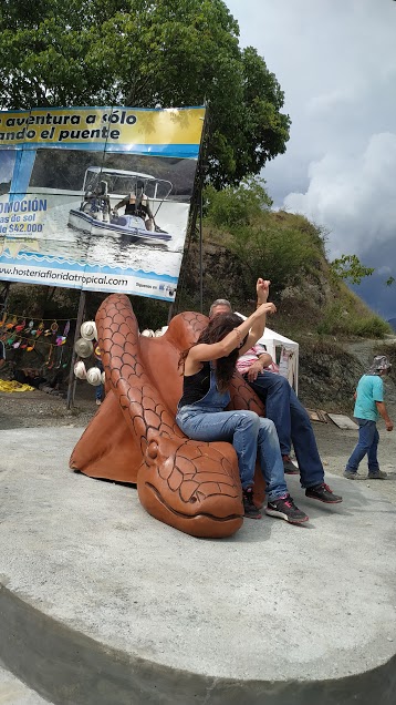 Es una escultura para compartir en familia, todo el que llega al sitio a divisar el puente de Ocidente podrá sentarse al pie de la escultura y observar el paisaje mientras los niños juegan y se divierten en ella, pueden hacer de la escultura su pasatiempo.