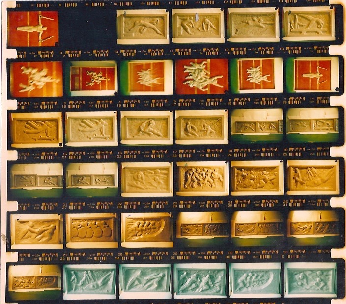 Por último los del frente: relieves muy puntuales que simbolizan el triunfo y la alegría en el deporte.