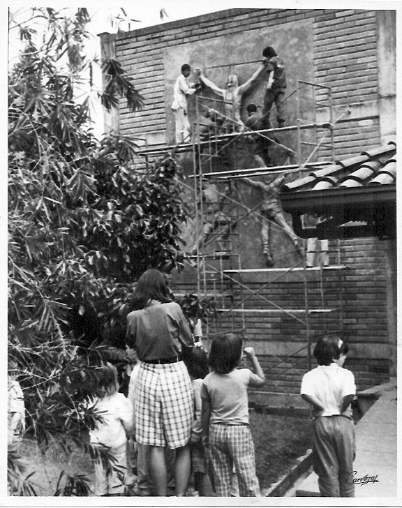 Una vez terminado el proceso de modelar las esculturas relieve se procedió a sacar los moldes en yeso y estos fueron llevados al Colegio Alemán.