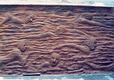 Se hicieron las formaletas en madera Y se recubrieron con costales y caulla luego se procedió a colocar el barro y así modelar los relieves.
