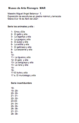 Son 94 esculturas en cerámica-terracota ,piedra, mármol y bronce que están exhibidas