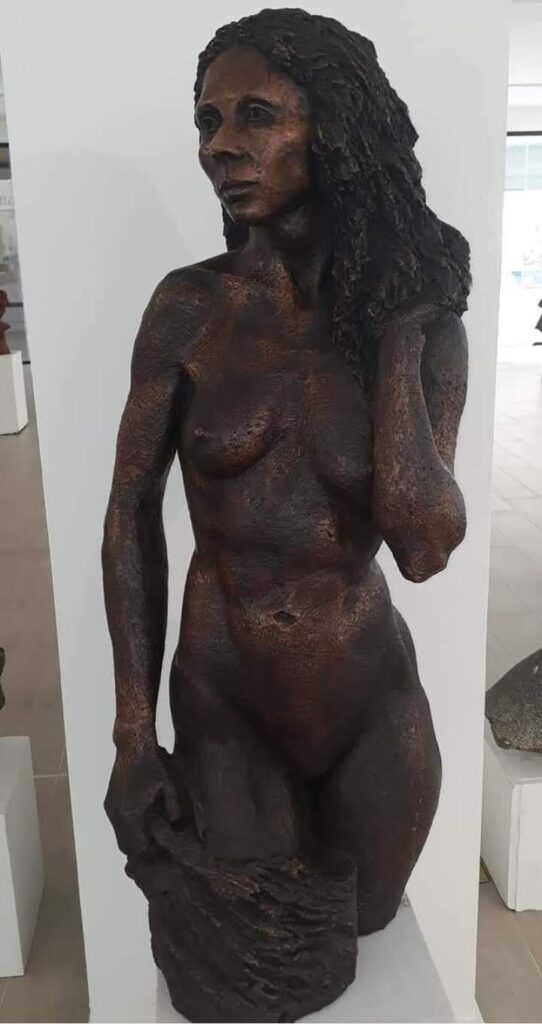 Una escultura figurativa con materiales clásicos de ella como el barro, la piedra, el mármol, la madera y el bronce en pequeño y gran formato.
