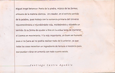 En el año 1999 expuse individualmente en mi Taller-Galeria de Envigado una muestra que llamé “De primera Mano” con esculturas en diversos materiales como el barro, el hierro, el cobre, la madera, la piedra, el granito esmerilado y el mármol, destacándose la presencia alli de la serie de “Reminiscencias o recuerdos” son esculturas en terracota de gran formato, con figuras femeninas que recuerdan los juegos de infancia como “Pipo y cuarta”, “Catapiz”, “Me quiere…no me quiere”, “Sueños de infancia”, “Ecos de mi tierra”, “El carrito”, “La Magdalena”, “Ella”, “La bañista”, otras en piedra y en monedas de cobre como: “La modelo”, “Maternidad”; “Libertad”, “Cabeza de Toro”, “Torso femenino” entre otras, fue una exposición presentada por el Señor Alcalde de Envigado Héctor Londoño.