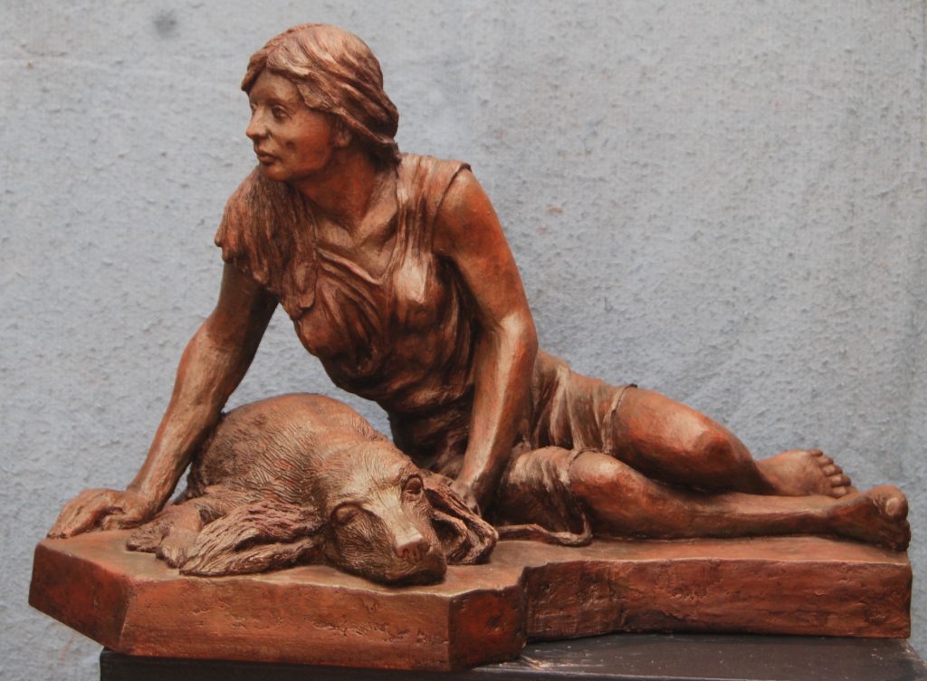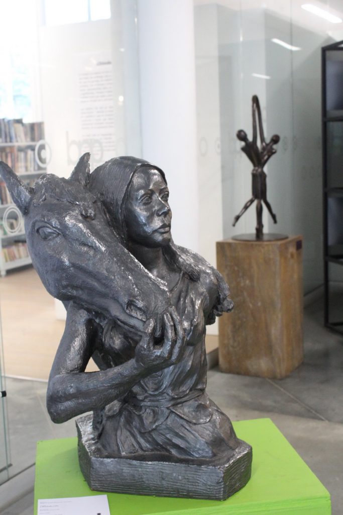 En el año 2020 inauguré el 4 de Marzo una exposición individual en la Biblioteca Pública Piloto de Medellin sede Carlos E. Restrepo denominada “Las mujeres y sus animales” con obra reciente en terracota y presentada por el Escritor John Jairo Saldarriaga con tan mala suerte que a la semana siguiente de la inauguración quedó confinada por la pandemia del coronavirus, es una exposición de 20 esculturas donde cada mujer está acompañada de un animal vemos entonces a mis perros Ema y Pablo, lo mismo que a la iguana, al gato, a las guaguas, al conejo, al gallinazo, al cisne, a la serpiente, al jaguar, a la ardilla, a la tortuga, a la rana entre otros, todo un homenaje a la mujer y a la naturaleza en animales que de alguna manera han tenido que ver conmigo.