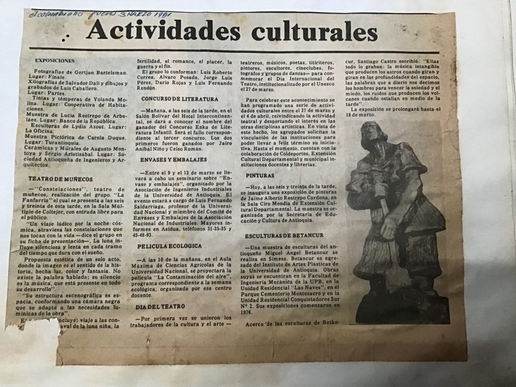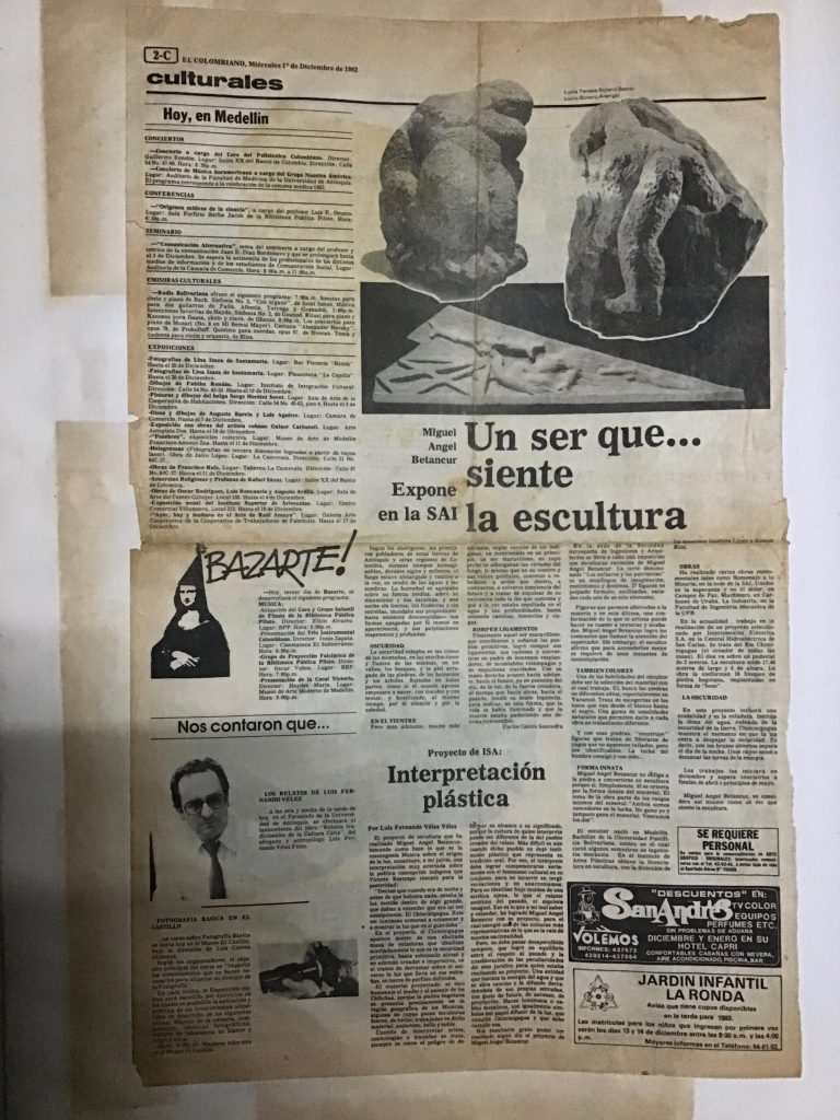 En 1981 llevé mis esculturas a la fabrica de SIMESA la Empresa Siderúrgica por excelencia de Medellín, la presentación de la exposición me la hizo mi amigo Santiago Castro Agudelo allí presenté esculturas en yeso y piedra.