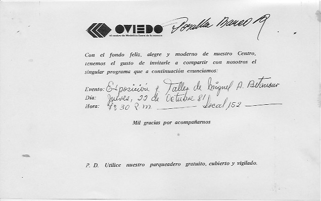Este mismo año, 1981 expuse en el Centro Comercial Oviedo bajo la administración de la Doctora Doralba Barco e hice un taller al aire libre de talla directa en piedra y les doné la escultura “LA HISTORIA” .