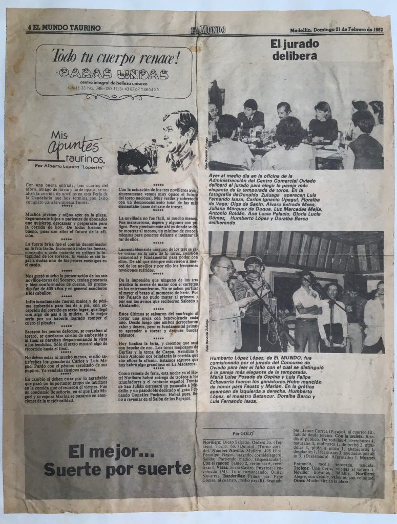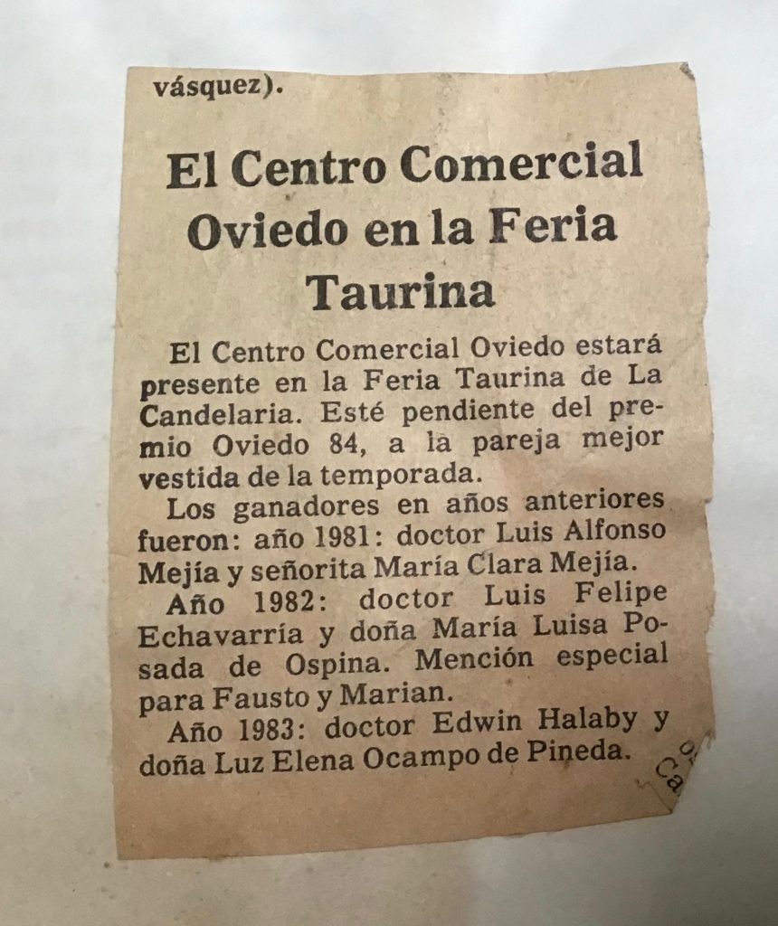 Al centro Comercial se le hizo varias veces los trofeos taurinos para darlos de premio a la pareja más elegante de las Ferias Taurinas de La Candelaria de Medellin.