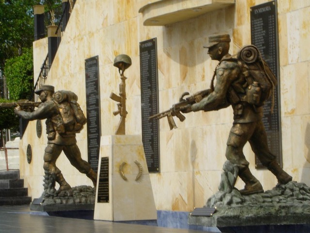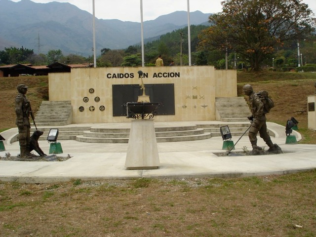 Para el año 2007 realicé el “MONUMENTO A LOS HÉROES CAÍDOS EN ACCIÓN” para La Décima Cuarta Brigada del Municipio de Puerto Berrio-Antioquia. Allí lleve “El soldado con el fusil Galil”, ”El soldado con la metralleta M 60” y el “Fusil”, estas esculturas fueron modeladas en barro en el Taller de Envigado y el proceso de vaciado en concreto se hizo en el Batallón en su sitio con la ayuda de varios Soldados y un calor infernal.
