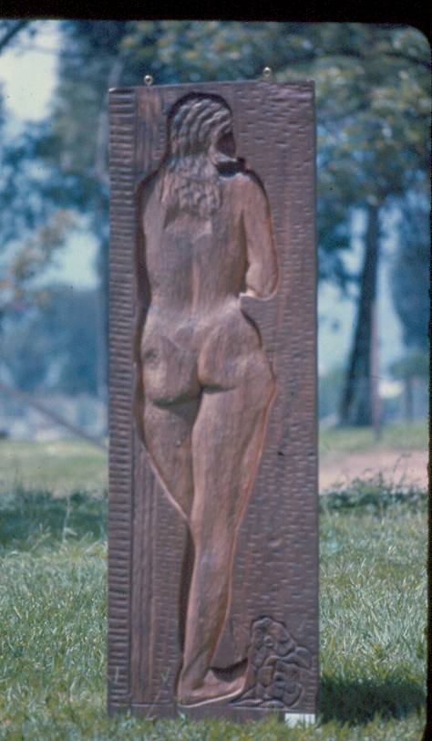 La casa donde vivía con mi esposa Martha Elena con quien me había casado en el año de 1975 me quedaba chiquita, allí recuerdo que hice muchas obras, entre ellas un mural en madera de cedro para un amigo de 2.10 mts por 1.10mts. por 0.05 mts llamado “las Lavanderas”.